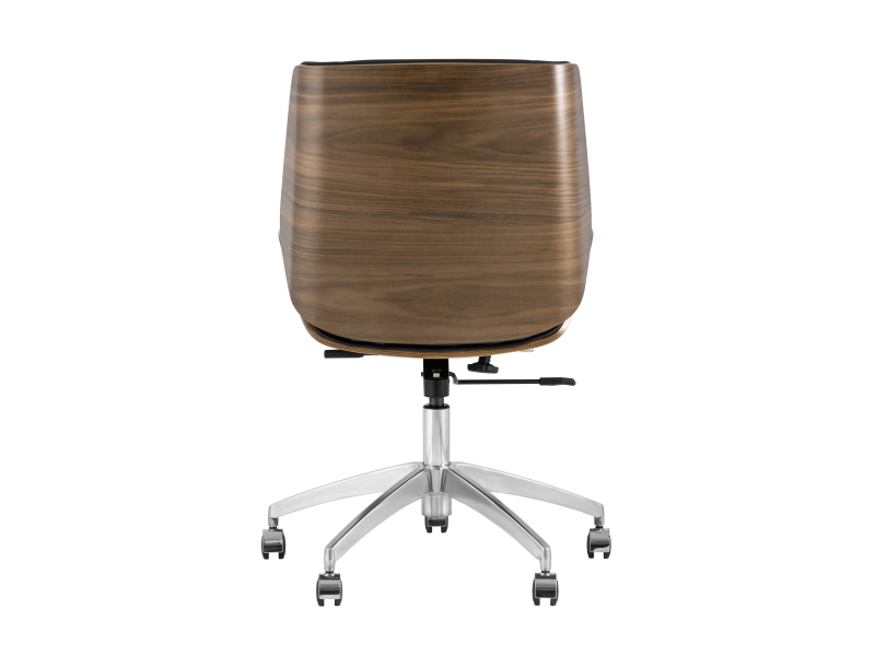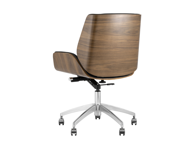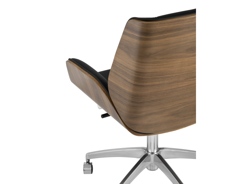 Современное и функциональное офисное кресло. Дизайнерская форма добавит помещению уюта и стиля, а вставки, декорированные под натуральное дерево, выглядят очень изысканно.