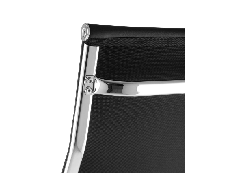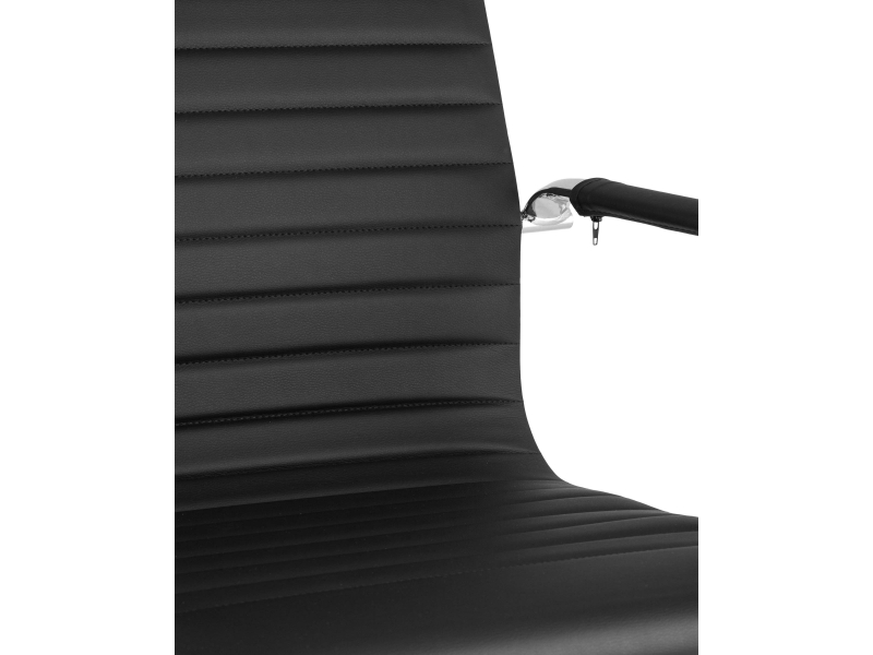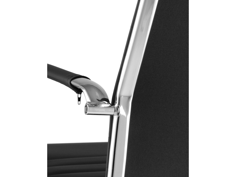 Сиденье и спинка кресла изготовлены из экокожи. Этот же материал используется для чехлов на подлокотниках. Крестовина и подлокотники выполнены из хромированного металла.