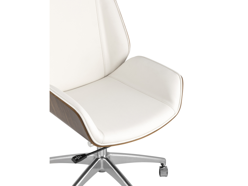 Обивка выполнена из качественной экокожи. Комфорта добавляют удобные подлокотники, а благодаря механизму регулировки высоты и качания можно выбрать наиболее удобное положение. Дизайнерская форма добавит помещению уюта и стиля, а вставки, декорированные под натуральное дерево, выглядят очень изысканно.