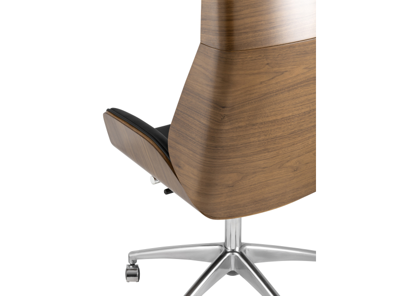 Обивка выполнена из качественной экокожи. Комфорта добавляют удобные подлокотники, а благодаря механизму регулировки высоты и качания можно выбрать наиболее удобное положение. Дизайнерская форма добавит помещению уюта и стиля, а вставки, декорированные под натуральное дерево, выглядят очень изысканно.