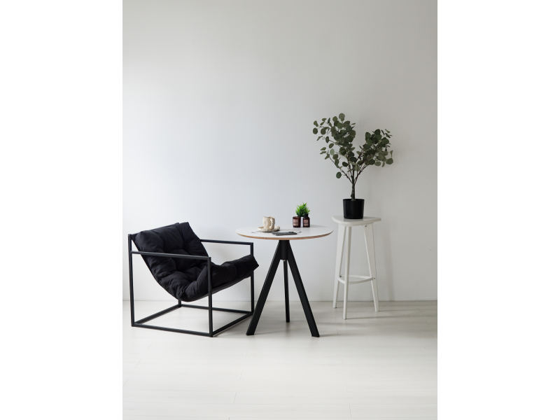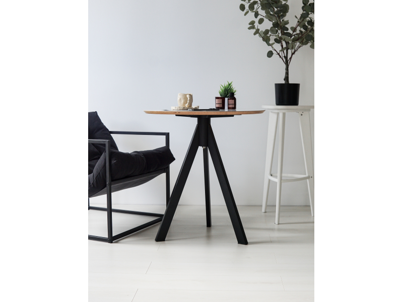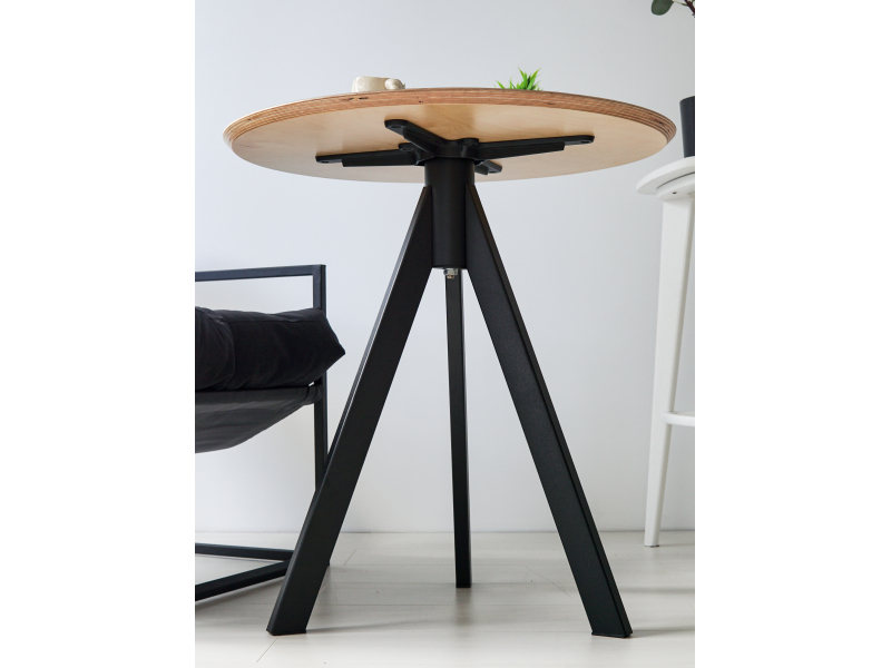Подстолье круглого стола Arki выполнено из металла. Есть регулировочные подпятники. Столешница произведена из фанеры, толщиной 18 мм, покрытой пластиком HPL. Торцы имеют декоративный скос под углом 45 градусов. Покрыты защитным лаком. Лицевая сторона столешницы белая. Поставляется в разобранном виде.