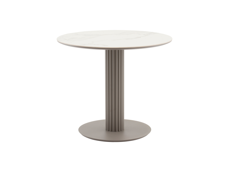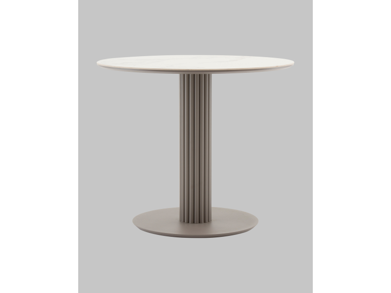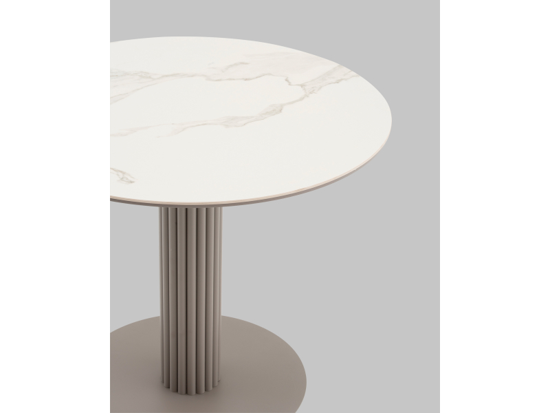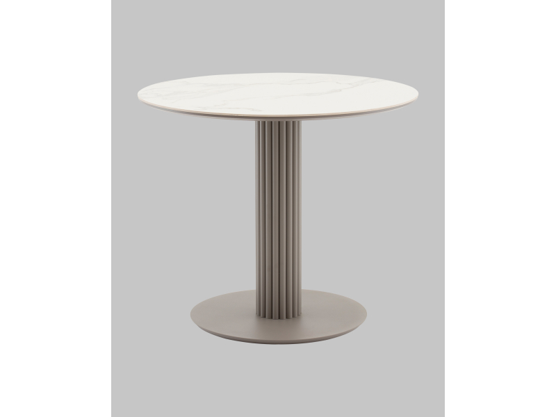 Стол круглый Терралино D90 верх керамика белый матовый, основание металл латте