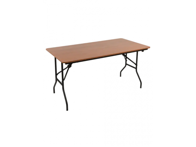 Прямоугольный складной стол 20-ДМ предназначен для использования в банкетных залах или на конференциях. Размер столешницы 1500x700 мм. Столешница изготовлена из ЛДСП толщиной 16 мм. Каркас произведен из стальных труб круглого сечения. Металл покрыт порошковой краской в черный цвет. Высота стола 750 мм.