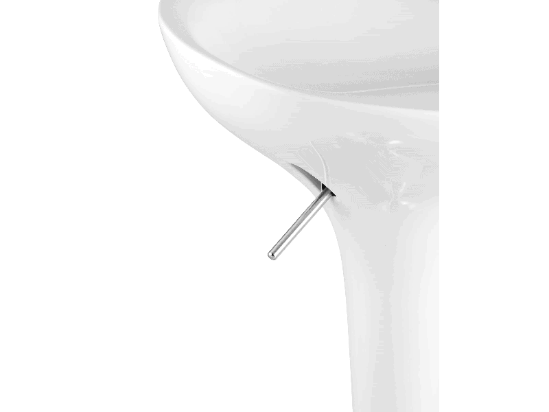 Сидение выполнено из высокопрочной пластмассы приятного серебристого оттенка. Плавная форма сидения позволяет обеспечить посетителя комфортабельными условиями.