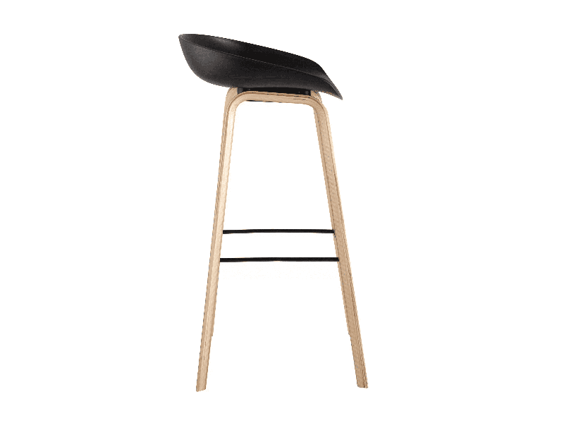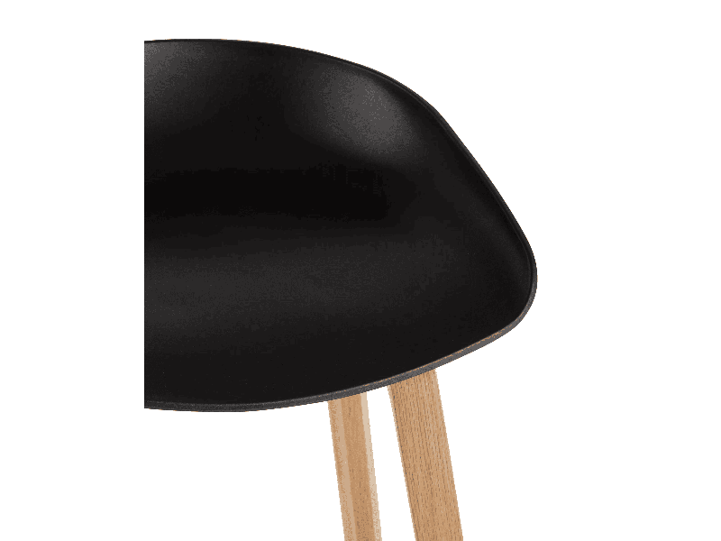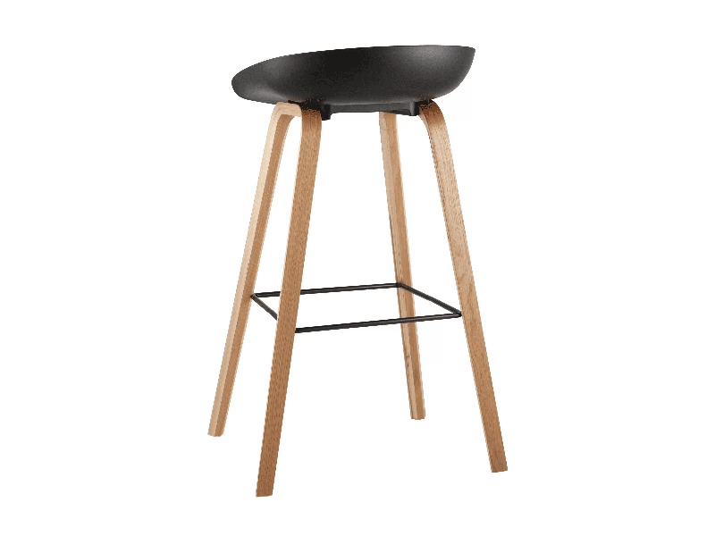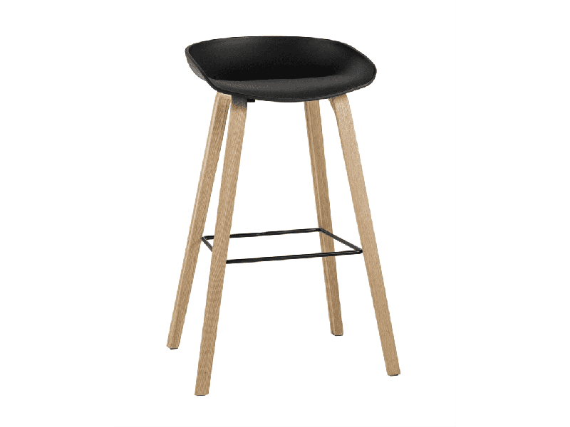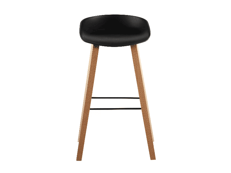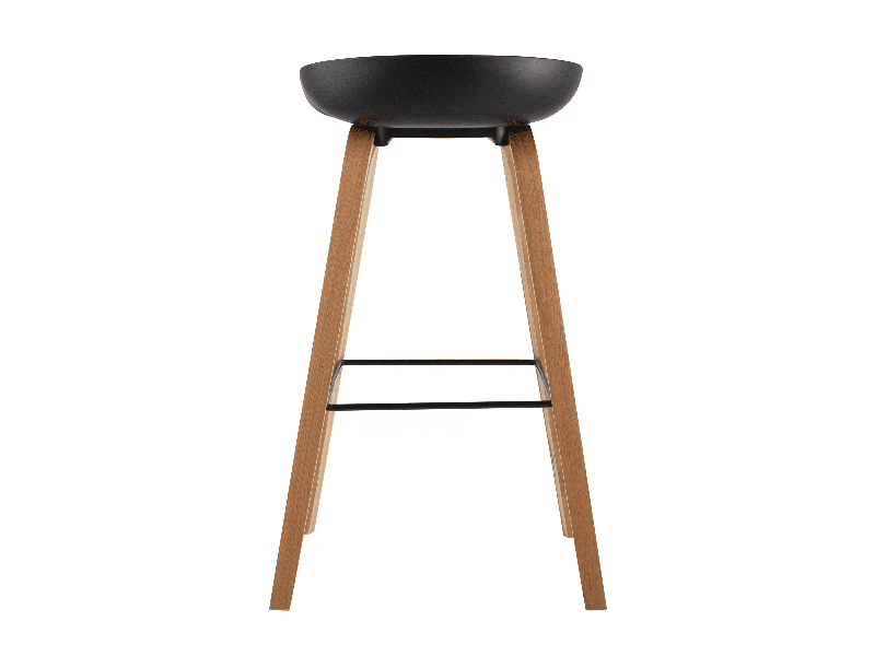 В дизайне модели «Либра» используется сочетание черного пластика и естественного оттенка натурального дерева – опоясывающая ножки опорная планка в тон сиденью уравновешивает цветовую комбинацию и подчеркивает модные геометрические формы барного стула. Высота мебели достаточна для стоек стандартной высоты.