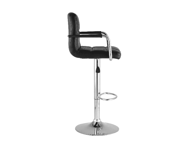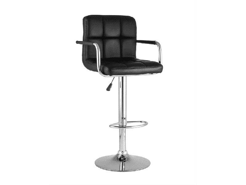 Материалы: хромированный металл, газ-лифт, фанера, искусственная кожа PU. Регулировка высоты 63-83 см Максимальная нагрузка на газ-лифт до 100 кг. Мягкий барный стул с подлокотниками в стиле баухаус. Стул снабжен поворотно подъемным механизмом газ-лифт. Обивка сиденья — искусственная кожа. Идеальное решение для домашнего бара.