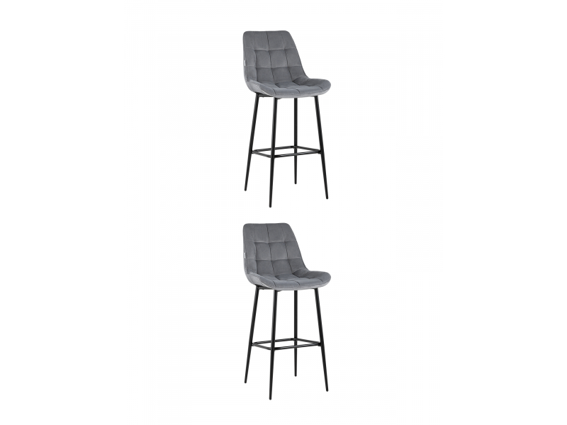 Комплект из двух барных стульев Флекс обивка велюр серый ножки металл черные 2 шт